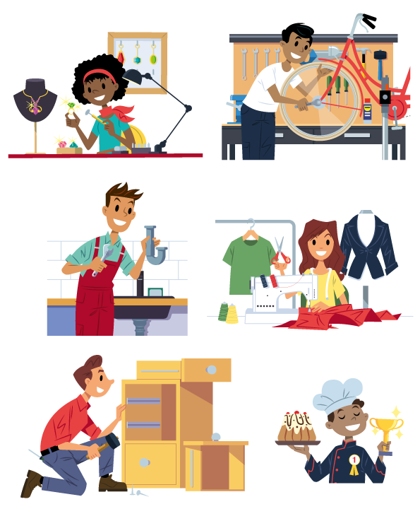 Illustrations réalisées un guide pour les Chambres de Métiers et de l’Artisanat.
